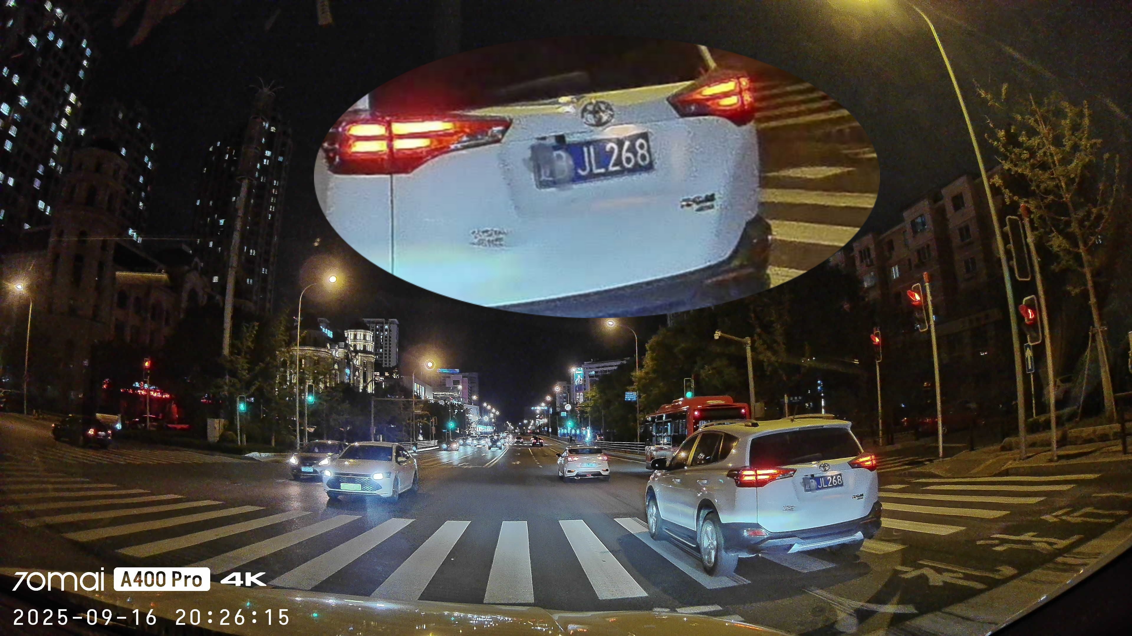 白天场景里,下午 5点阳光充足时,桥体钢筋纹理、远处广告牌小字都清晰可见,放大后 30 米外前车车牌字符边缘没有模糊。最亮眼的是 HDR 效果( “智能 HDR+MCSS 3.0” 功能): A400Pro 能平衡高光与暗部,车顶反光不刺眼,车底阴影里也能看清地面标线。显然是 70 迈多年 ISP 算法积累的功劳。不过 25fps 帧率在高速上有小遗憾,120 码行驶时前车车牌偶尔有轻微拖影,虽不影响取证,但经常跑高速的用户可能会在意。