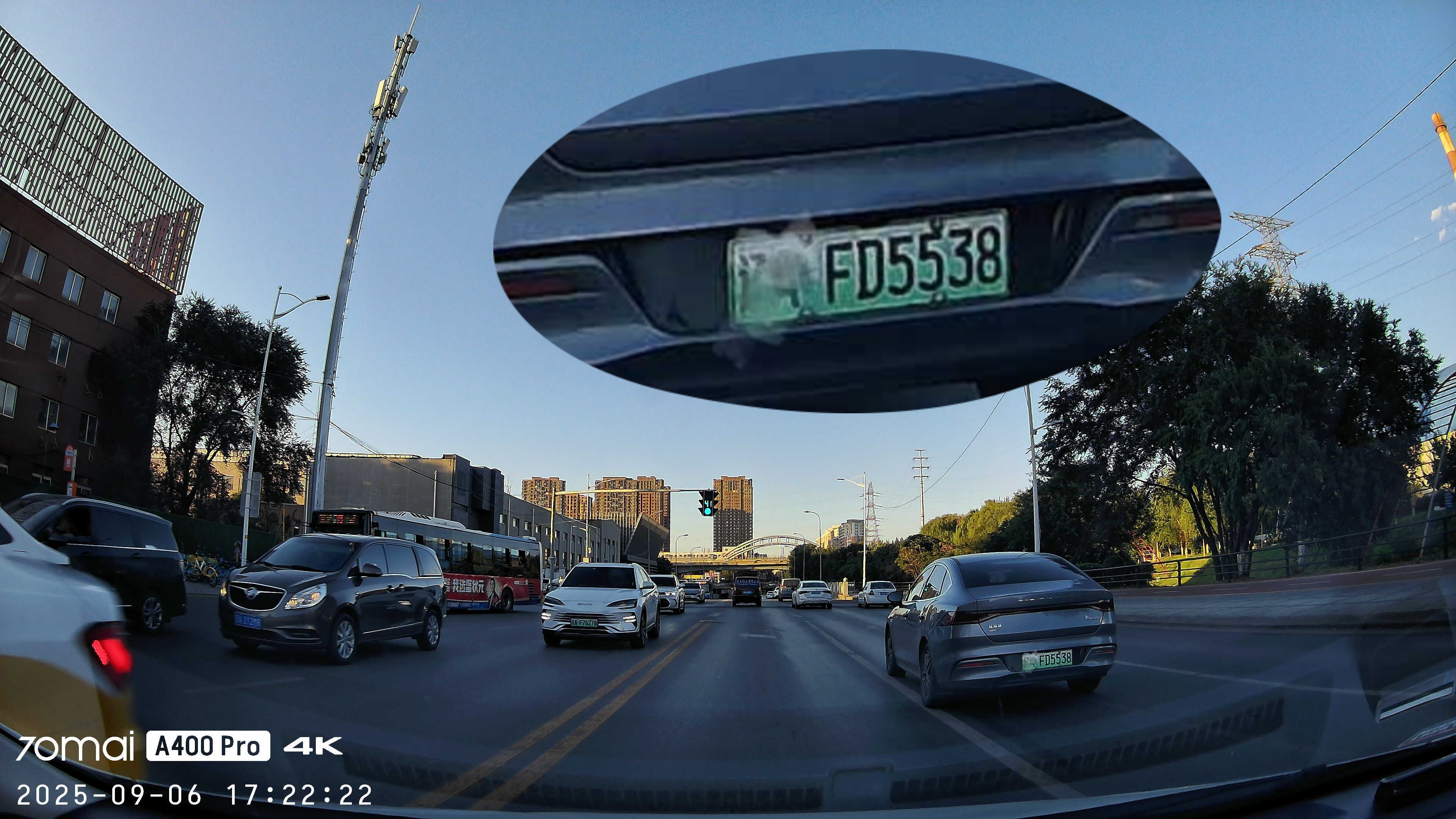 A400Pro 4K 的核心卖点是 “极致 4K”, 3840×2160 分辨率、800 万像素、25fps 帧率,搭配 F1.55 大光圈和 70 迈自研星光夜枭影像算法。这几天我从白天、夜间、特殊场景三个维度实测,结果比预期更惊喜 —— 不仅碾压同价位机型,甚至能和 400 元级 4K 记录仪掰手腕。