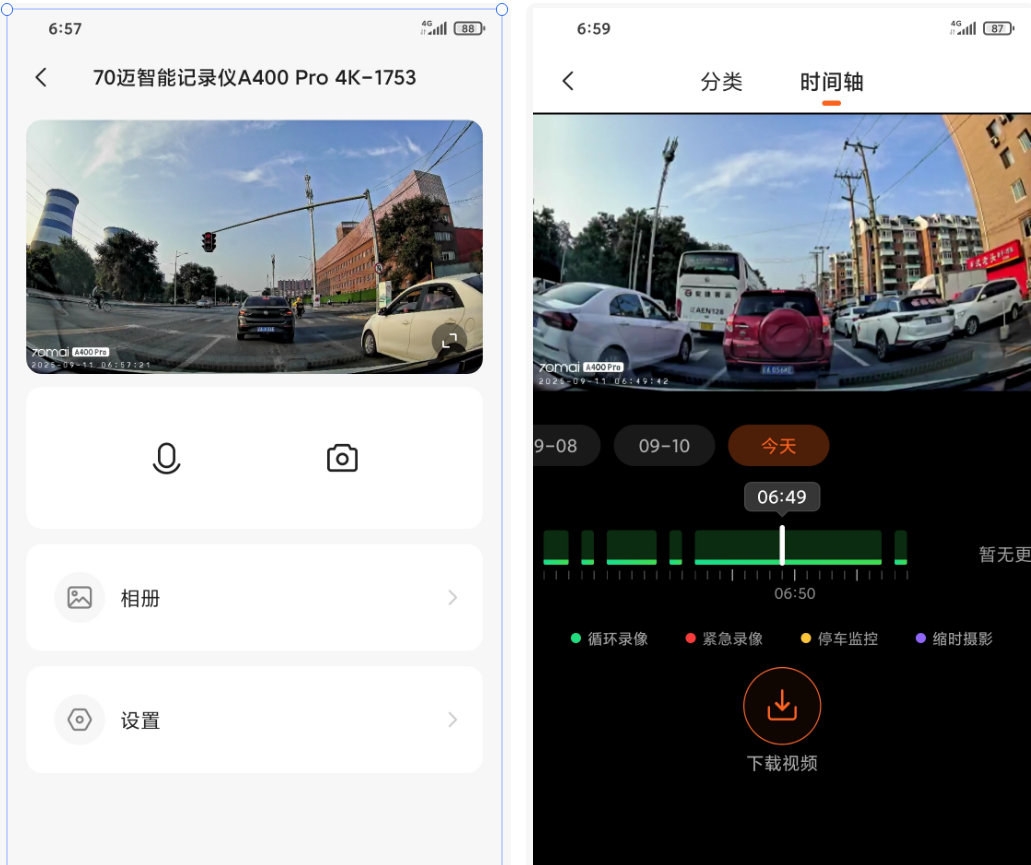 入门记录仪的智能功能不用复杂,“够用、不添乱” 就好。A400Pro 的语音声控和 APP 互联,实测符合预期,细节处有小惊喜也有小遗憾,基本贴合 “更智能” 的描述。