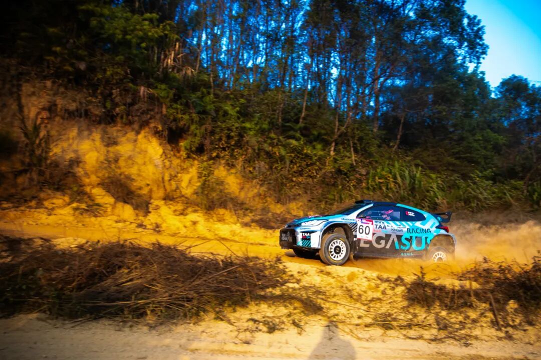 Team Pegasus星速赛车林德伟/刘田杨车组今天继续出车,并在3个赛段均创造全场最快的时间。在清晨7点半展开的SS3赛段中,林德伟做出19:15.94的时间,而进入SS4他更进一步,做出18:56.45的时间,是全场唯一一名打入19分钟以内的车手。到SS5的超级短道中,他又创造了1:37.81的全场最快时间。林德伟在赛后表示:“今天天气非常给力,而随着赛事的深入,这台全新的 GR Yaris Rally2在砂石路上表现非常猛,车身灵敏,赛道的节奏也越来越快。”