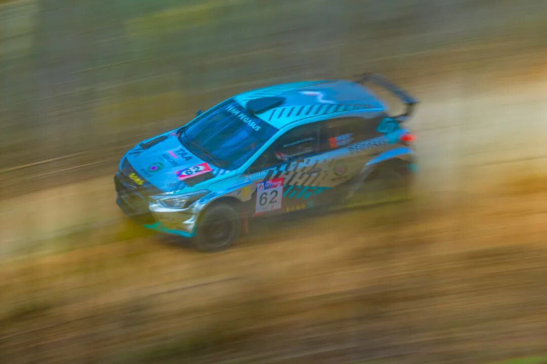 Team Pegasus星速赛车傅军飞/周勇依然在适应Hyundai i20 N Rally2 step2赛车。由于昨天赛车挡风玻璃被石子打裂,视线受阻,他对赛道的把握还不够了然于心。而今天更是连续跑两次长赛道,赛道弯急、凶险,每一次的高速穿越,对于驾驶新款赛车的他来说都是新的突破。