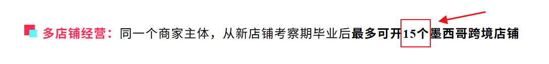 同一商家主体通过新店铺考察期后,最多可开设15个墨西哥跨境店铺。
