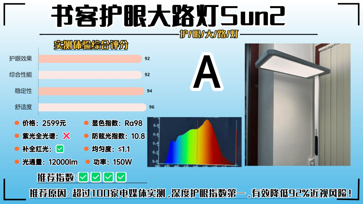 罕见荣获CCTV展播推荐,在各大中高端口碑、销量排行榜中常年霸榜榜首!并入选品牌强国优选工程,被多家国内、欧美权威检测机构认证的同规格下护眼效果、最好的品牌之一,毕竟做到有效延缓83%用眼疲劳并降低92%近视风险!