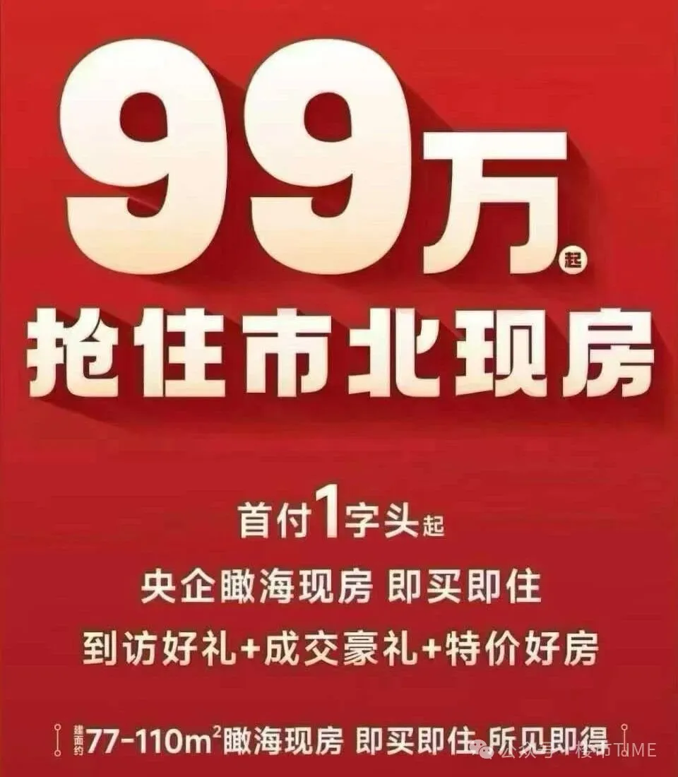 保利时代,从当年开盘的“150万留在市北”,到一个月前的“99万抢住市北现房”,结果现在,门槛价直接跌破90万大关、还送车位。这哪里是降价,这简直就是原地腰斩!