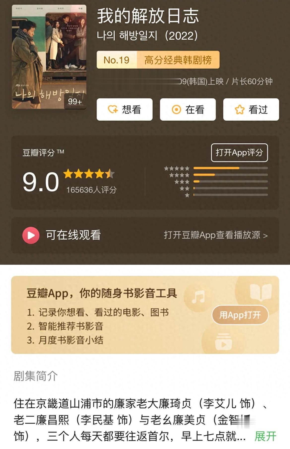 作为每天挤1.5小时地铁通勤的社畜,我第一次刷到《我的解放日志》时,直接被廉美贞攥着半瓶矿泉水、面无表情挤地铁的镜头戳中——这不就是我每天的真实写照吗?没有豪门恩怨、没有奇幻逆袭,这部聚焦乡下三姐弟日常的韩剧,豆瓣16万人打出9.0高分,收官收视率拿下JTBC年度前列,它凭什么让千万社畜反复重温?答案藏在那些不起眼的生活细节里。