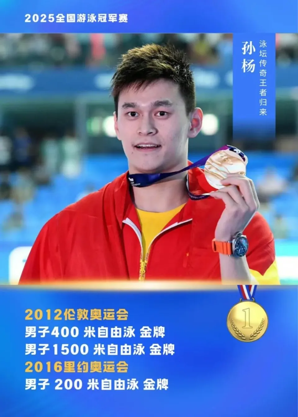 相信在大家的支持下,孙杨能够王者归来,再夺世界冠军!