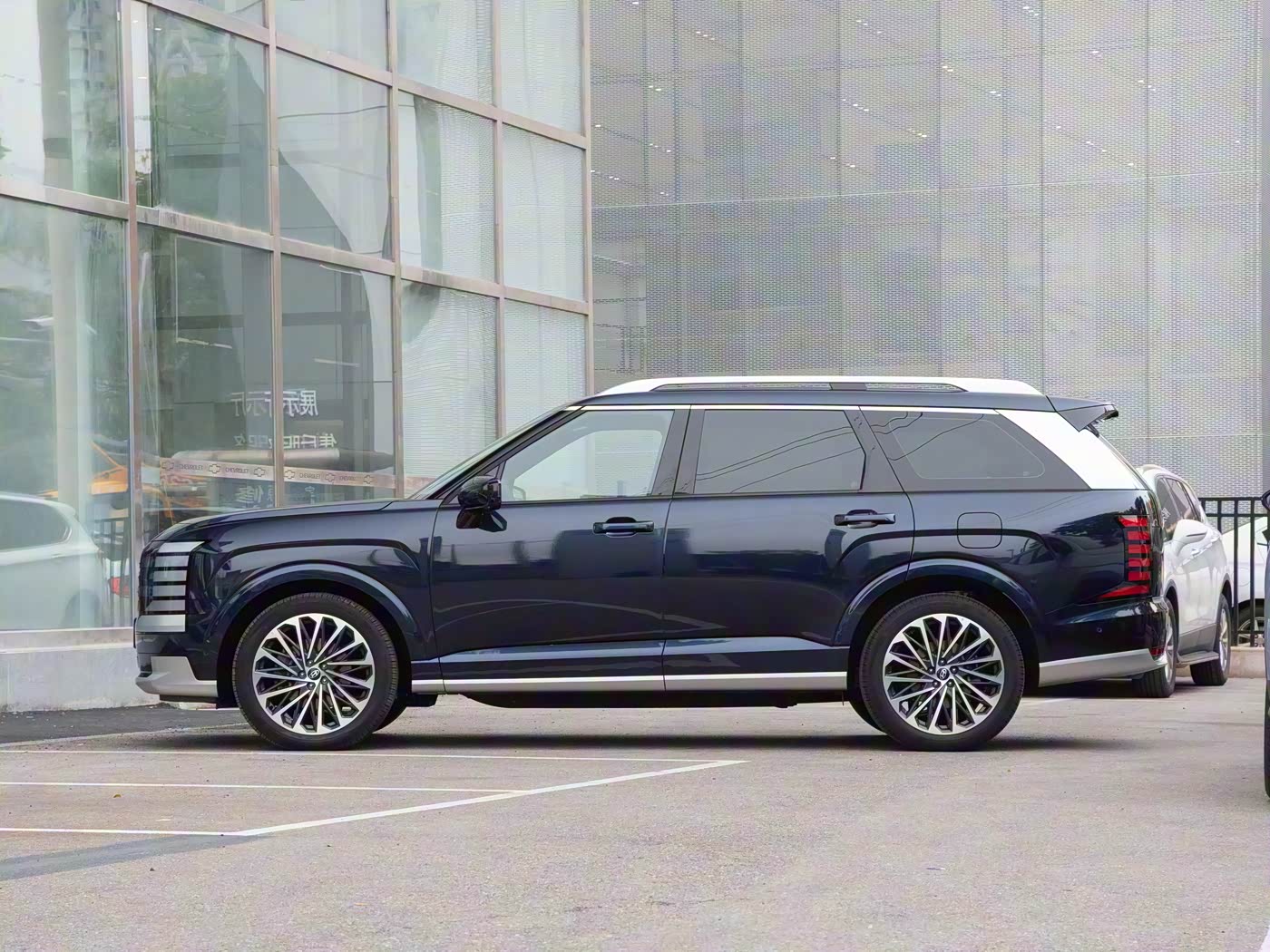 途昂Pro延续德系SUV的硬朗基因,以“力量感”为核心设计语言。前脸采用熏黑蜂窝状进气格栅,搭配犀利的LED大灯组,营造出强烈的视觉冲击力;车身侧面线条简洁流畅,5158mm的车长与2980mm的轴距勾勒出魁梧身姿,20英寸多辐轮毂(顶配可选21英寸)进一步强化运动气息;车尾部分,贯穿式LED尾灯与双边共两出排气布局,既显沉稳又不失动感。整体设计兼顾商务与家用场景,满足多场景需求。帕里斯帝则以“新奢美学”为理念,通过大量直线元素与立体造型塑造硬派形象。前脸垂直DRL日行灯与宽体进气格栅形成鲜明对比,隐藏式大灯设计增添科技感;车身侧面采用直立式溜背造型,搭配高肩线与宽大D柱,视觉张力十足;车尾宝石质感尾灯与镀铬装饰条相呼应,双边共两出排气布局暗示动力储备。相比途昂Pro的“德式严谨”,帕里斯帝更显“美式粗犷”,适合追求个性表达的消费者。
