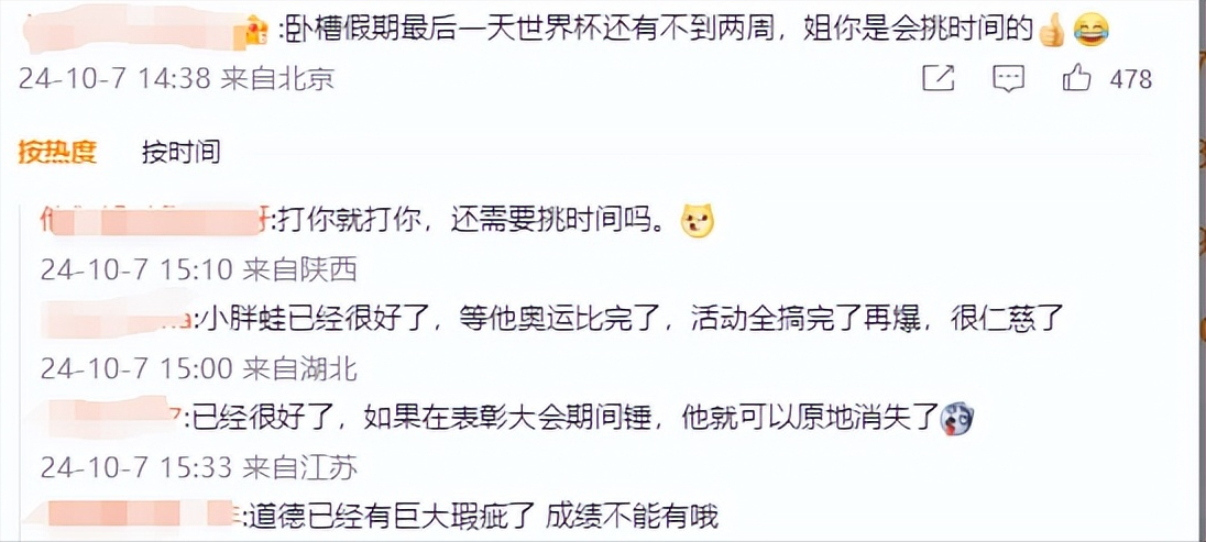 还有人说爆料的时间不对,明显就是要毁了覃海洋的运动员生涯,真的很无语,难道让这样劣迹斑斑的人代表国家去比赛就是好的结果吗?连自己下半身都管不住的人,又怎么能期待他真心为国争光