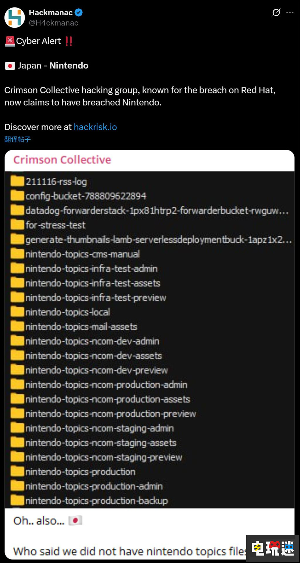 游戏公司一直都是黑客组织眼中的“肥羊”,这次轮到任天堂被盯上了。根据黑客组织Crimson Collective发出的消息,他们已经成功入侵了任天堂服务器,并且获得了公司内部数据。