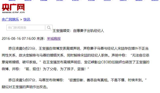 王宝强长久以来以其憨厚老实的形象为人所知,却传出他的经纪人和妻子有外遇的消息。