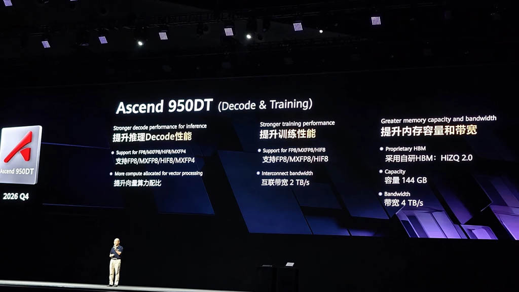 昇腾950DT芯片则专注于增强推理解码能力,在提升训练性能的同时扩大内存容量与带宽。将整个950系列将把AI推理效率推向新高度。
