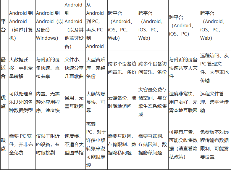 结论在 Android 设备之间传输音乐比你想象的要简单,尤其是在你了解了这些有效的传输方法之后。如果你想一次性传输所有歌曲, iReaShare Phone Transfer将是最高效的选择。但如果你想选择性地传输部分歌曲,你可以使用蓝牙、快速共享等功能。