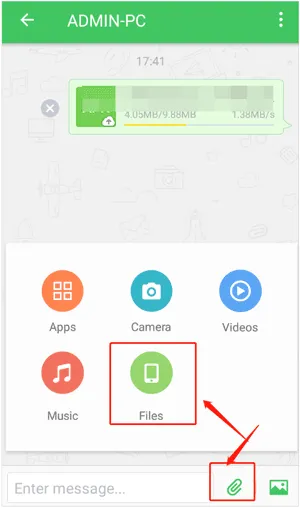 点击“附件”图标,选择“文件”或“音乐”来选择您的音乐文件,然后点击“发送”或复选标记进行确认。