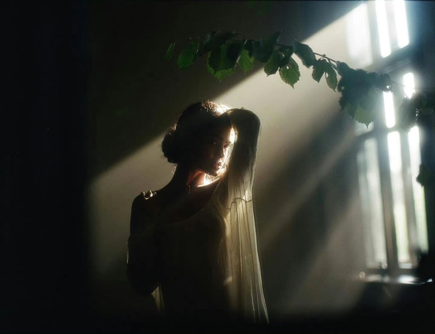 阴天时的光线,或透过白色窗帘的阳光。光线柔和,阴影浅淡,非常适合表现质感和平滑的肤色。