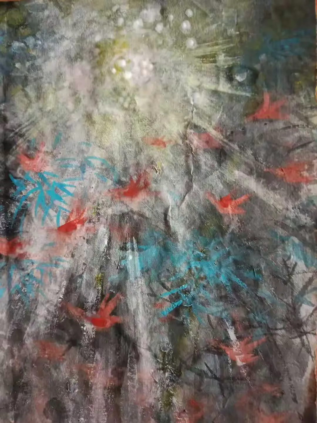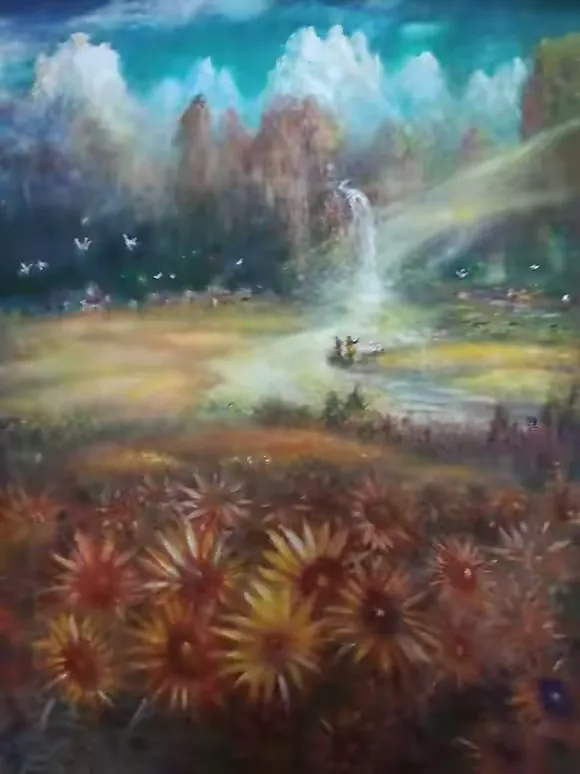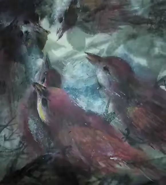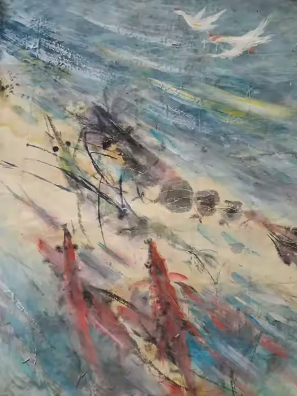 其绘画作品,以传统花鸟、山水为蓝本,融入现代抽象艺术的表现手法,让古典题材与当代审美完美交融,每一幅作品都承载着他对自然、对生活的深刻体悟。