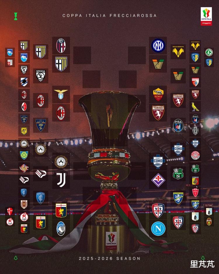 意大利杯16强对阵出炉,米兰将战拉齐奥、国米战威尼斯、尤文战乌迪内斯。