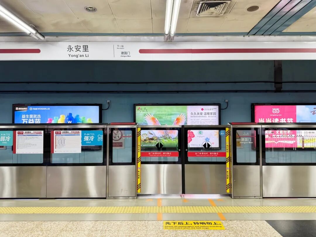北京地铁2号线朝阳门站电子屏幕展示“湿地守护计划”项目内容