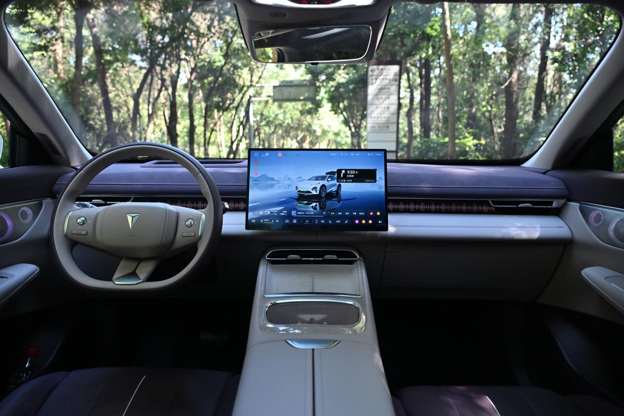 再来看深蓝S07 EV的车内细节,环抱式座舱的软包面积高达10.7平方米,IP台板+门板上装高触达面更是使用了问界M9同款的100%超纤绒感麂皮,质感出色。内饰提供有三款高级配色:月雾灰、热浪橙、暮烟紫,这里想重点介绍下新增的暮烟紫配色,自带一层朦胧柔美的氛围感,韵味悠长又不失神秘感,精准契合当代年轻人的时尚审美需求,且是同级车里少有的存在。