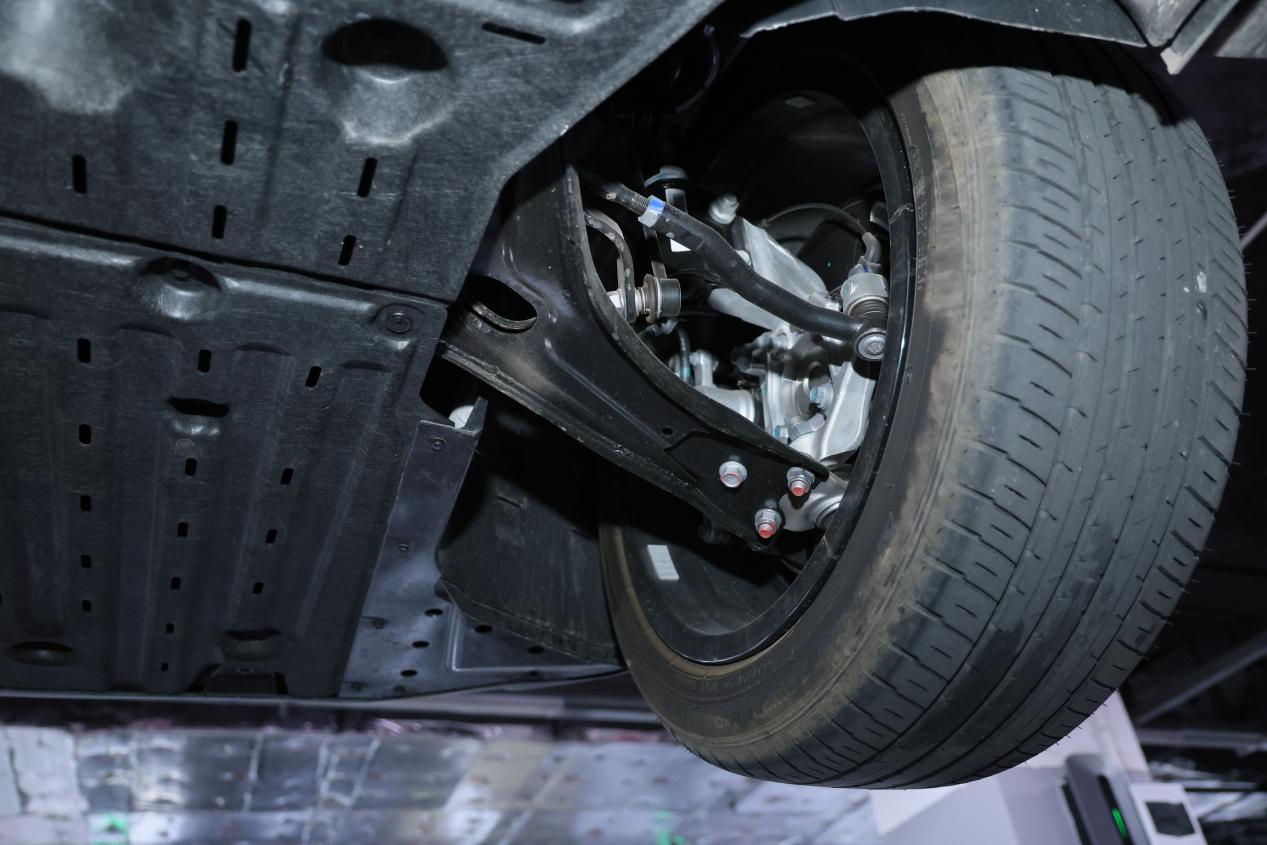 然后在底盘用料上,它采用前麦弗逊+后H臂多连杆独立悬架,实际开起来的感受就是过弯侧倾抑制优秀,操控信心足,然后在过减速带时震动过滤得比较干脆,没有多余弹跳,包括行驶在烂路上时底盘整体感也较强,因而可以提供有高级质感的驾乘舒适体验。