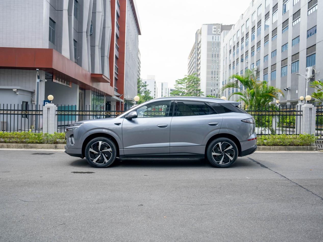 侧面溜背式的车身线条从车头一直延伸到车尾,无框车门的设计和标配19英寸的大轮毂(另外还有更大20英寸可选),整个侧面看起来特别修长且动感,虽是定位15万级的车型,倒有几分30万级豪华轿跑SUV的味道。