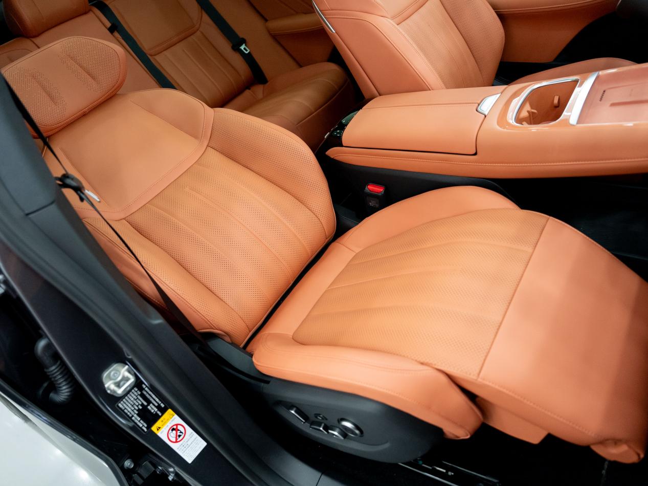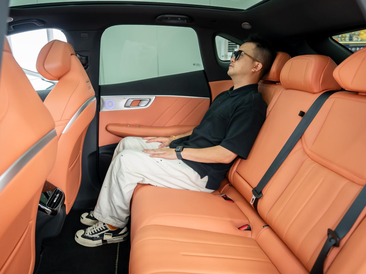 海狮06 EV内饰大量使用软性材质包裹,门板也有大面积软包装饰,触感柔软;座椅采用高档皮质材料包裹,搭配细腻的缝线工艺,质感十足。舒适性配置方面,海狮06主驾座椅支持 8 向电动调节、4 向腰部支撑,前排座椅具备加热、通风功能。后排座椅靠背角度可调节,进一步提升了后排乘客的乘坐舒适性。