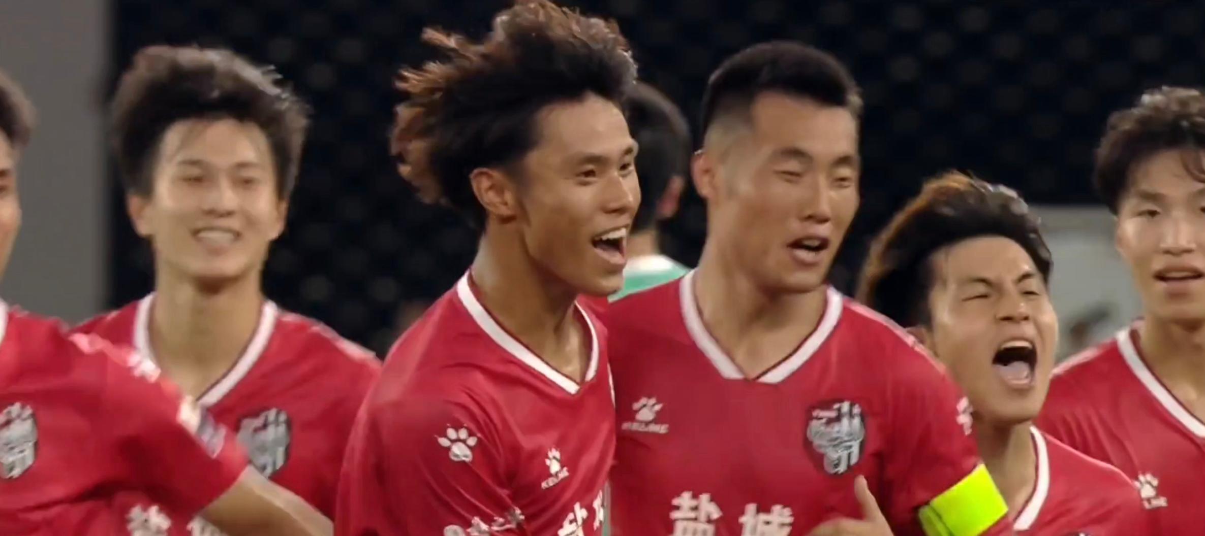 盐城中场胡书铭禁区外停球转身,没等球落地直接抽射。 皮球像炮弹砸进左上死角,镇江门将连手套尖都没蹭到。 这位前中甲球员扯着队徽冲向角旗杆,背后看台的疯狂人浪。
