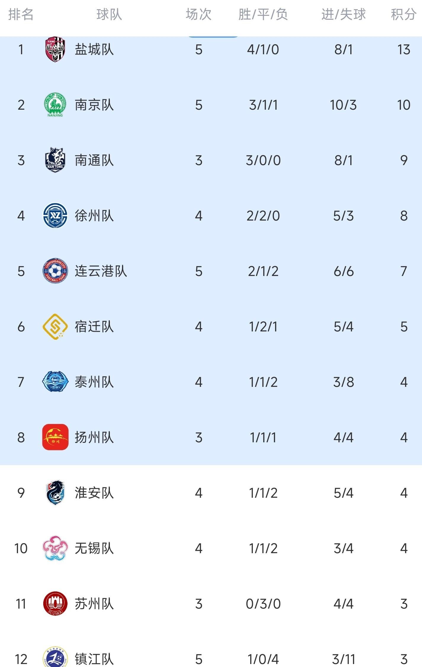 盐城5战4胜1平积13分登顶,南京队多赛1场差3分排第二。 下轮盐城将战南通队——这支“黑马”刚3-1掀翻苏州,队里有3个前中超梯队球员。 球迷论坛已开吵:“南通要是再赢,咱们麋鹿得改吃长江刀鱼! ”