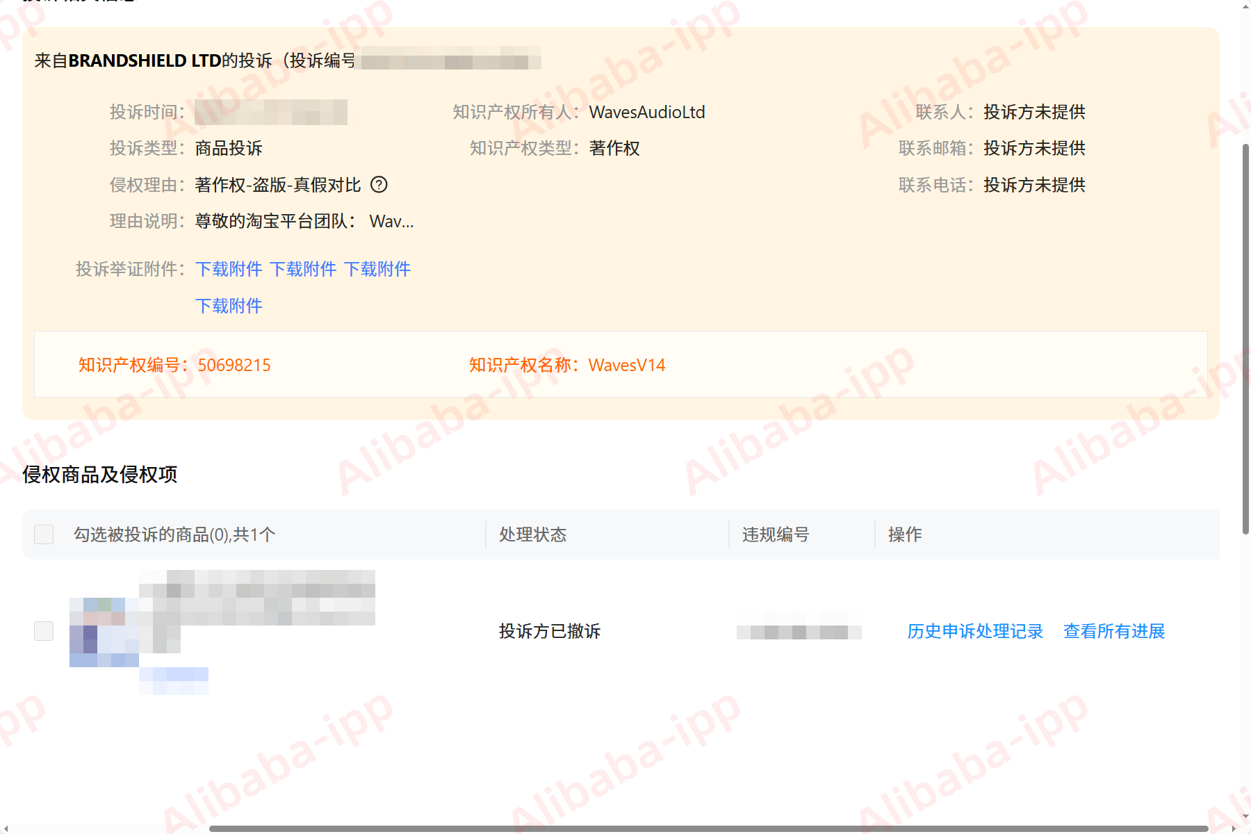 深吸一口气,老王强迫自己冷静下来。他仔细研读了投诉详情。这次投诉的知识产权编号清晰写着 50698215,权利人是大名鼎鼎的 Waves Audio Ltd,投诉类型明确为 著作权 侵权,理由是“真假对比”。他明白,品牌方通常会通过对比正版软件与销售商品在界面、功能、授权方式等方面的差异,来主张对方销售的是盗版。但老王清楚,自己店铺的商品描述和实际提供的服务,与投诉方指控的“盗版”存在本质区别。问题的核心,或许就在于对“销售行为”和“商品性质”的界定上。