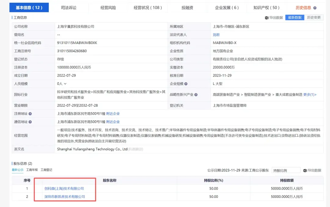 宇量昇的股东有两个,上海国资委100%实控的创科微和深圳新凯来。