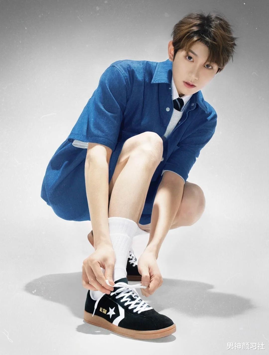 年纪小的男生,和运动鞋的适配度更高。大面积的蓝色穿搭再搭配上一双运动鞋,可以与上身休闲的look形成对比,给整体造型增添了浓浓的趣味感。