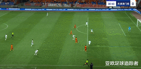 比赛第20分钟,迪力木拉提左路送出45度传中,叶楚贵禁区内头球将球顶偏。
