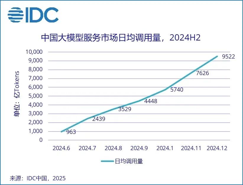 根据IDC数据,2025年上半年,中国公有云上大模型调用量达536.7万亿Tokens,相比2024全年114.2万亿tokens市场规模,仅2025年上半年就增长近400%。