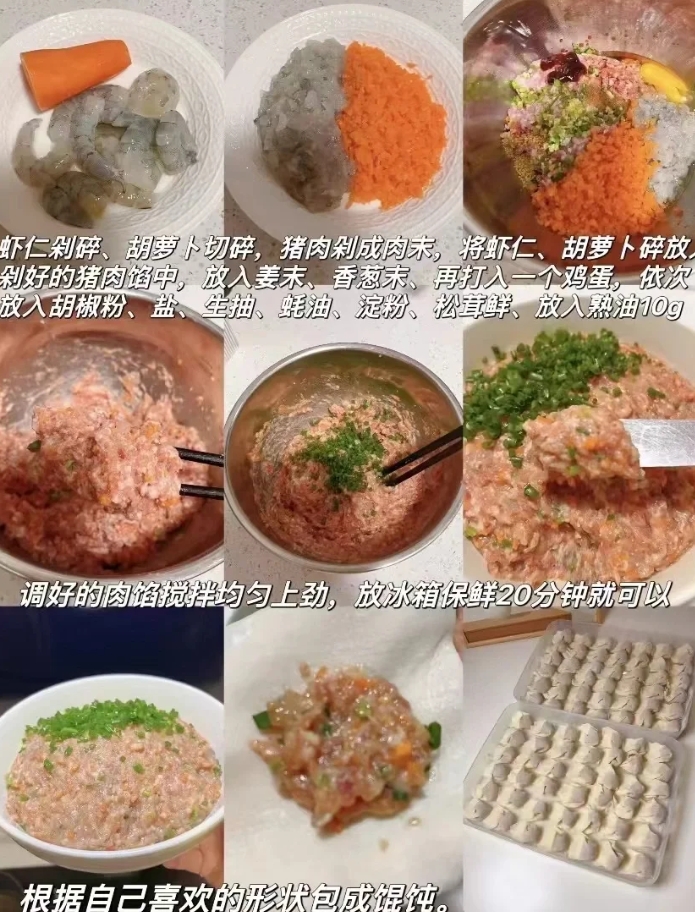 这些馅料万能又百搭,包进馄饨里嫩滑多汁,塞进饺子里满口留香,裹进包子里蒸出一汪鲜汤,每一口都是扎实的满足,满屋子都是幸福的味道!# 晒图笔记大赛#