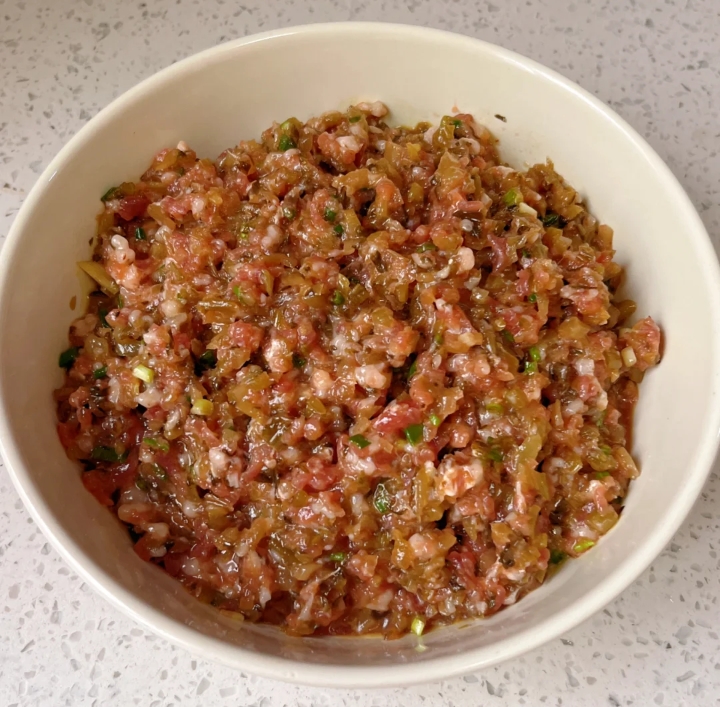 肉的选择:优先选三分肥七分瘦的猪肉(前腿肉 / 五花肉最佳),肥瘦比例适中,馅料更润不柴;纯瘦肉可加 1 勺猪油或食用油,增加多汁口感。