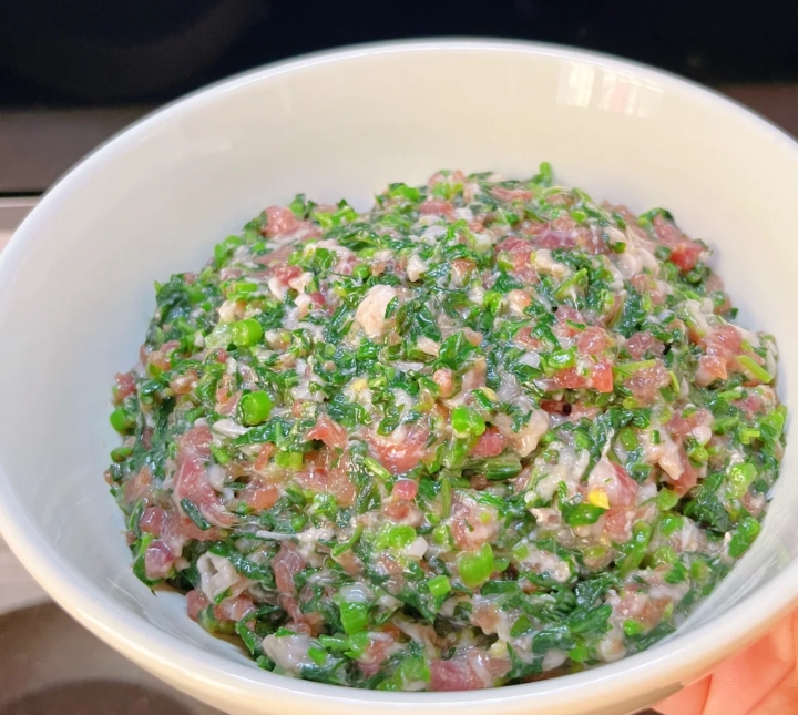 ✅️ 苋菜肉馅:清香软糯,颜色诱人