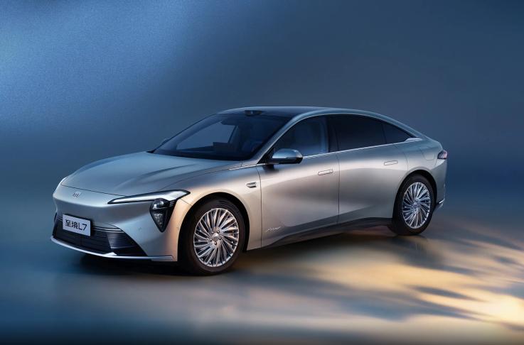 具体来看尺寸参数,至境L7的长宽高对应5032x1952x1500mm,轴距3000mm,轴长比达到0.596,车身比例协调舒展,符合一款中大型轿车应有的姿态。外观方面,新车延续了家族的设计语言,整个前脸的轮廓细腻饱满,细长的LED大灯组分布车头两端,与分体式远近光灯呼应,组成了风格凌厉的照明效果。此外,为突出运动化气息,前引擎盖隆起的筋线较为明显,整体设计趋向于运动属性。