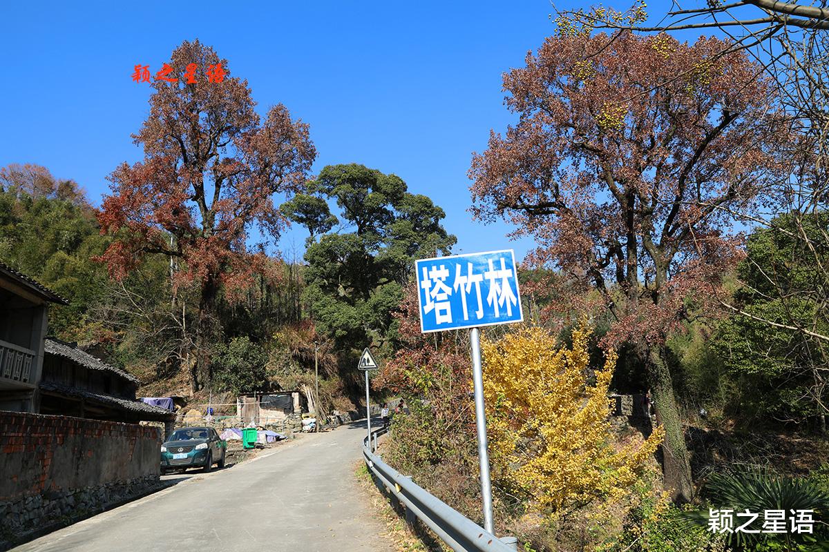从大山村沿公路前行,可以到达塔竹林村,五百多年的枫香树成林,还有宁波市内最古老的银杏树,古树与古村相映成景,宁波的赏秋网红打卡地。