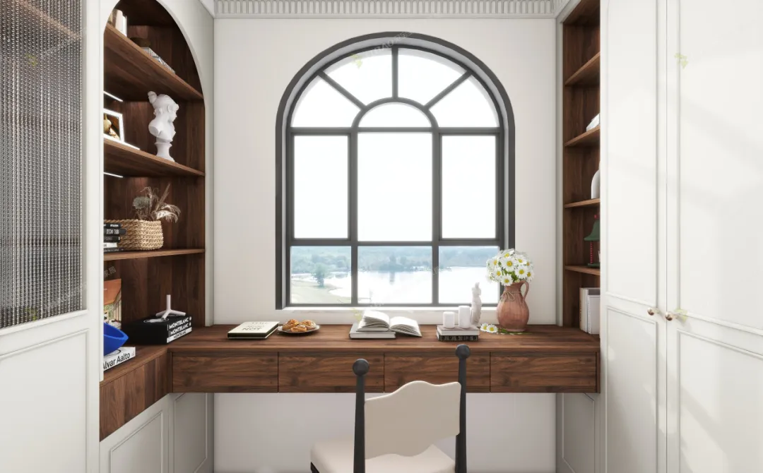 衣帽间和书房合二为一,双人书桌,两人办公或者辅导孩子学习足够用。