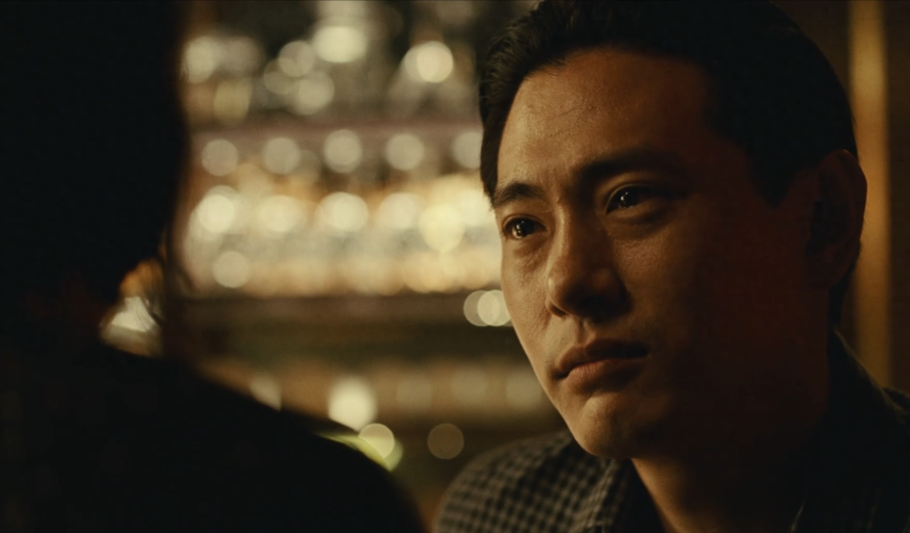 深夜,灯光昏暗,电影回到最初的场景。三人聊起韩国的日常,寒暄后的间歇,海盛开始眼神闪烁,上下左右打量一番,轻轻呼出一口气,细微到难以察觉又下定决心似的。“你移民过来真是太好了”,他说,“韩国对你来说太小了”。