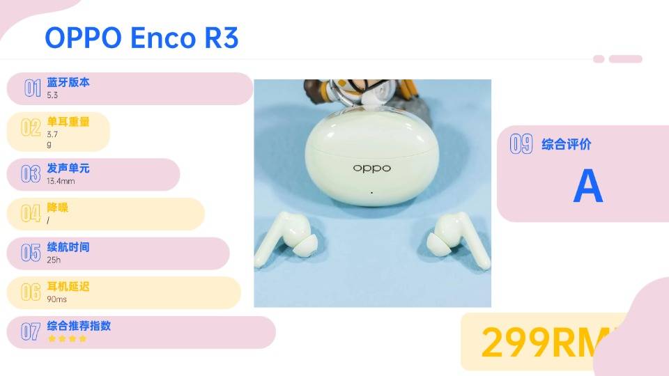 OPPO Enco R3的单耳重量仅约4克,佩戴时几乎感受不到负担,即便长时间使用,也不会让耳部产生明显压迫感。它的充电盒采用紧凑轻盈设计,携带十分方便,放进衣兜毫无压力,很适合日常通勤或出差途中使用。音质配置上,Enco R3配备13.4mm大尺寸动圈单元,这一规格在同价位产品中属于较高水准,能呈现更充沛的低频效果和更细腻的声音细节。
