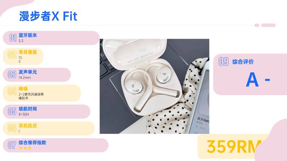 作为音频行业资深品牌,漫步者在运动耳机领域经验丰富,其推出的X Fit开放式耳机凭借独特设计与硬核性能,在同类产品中表现突出。它采用高密闭气导声腔结构,结合空气传导防漏音技术,在保证开放听感的同时,能有效防止声音外泄。