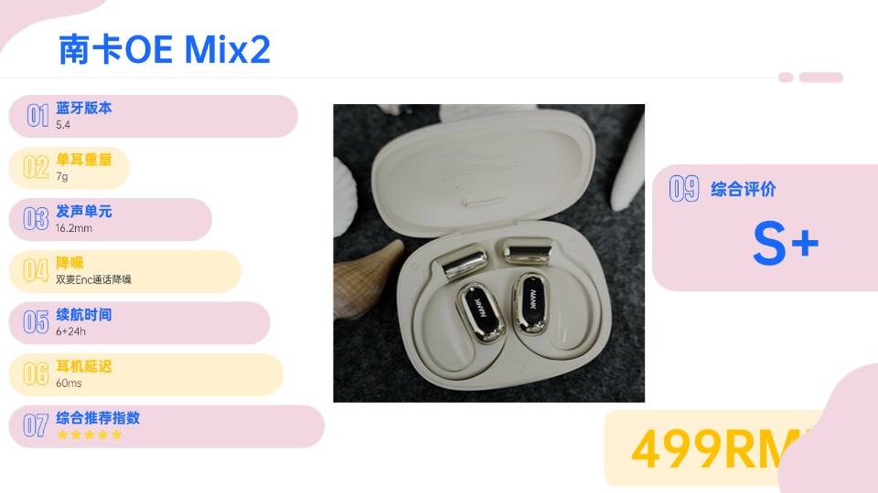 配置方面,OE Mix2同样全面升级,采用最新蓝牙5.4芯片,通信性能与抗干扰能力显著提升;支持双麦ENC通话降噪,即便在嘈杂环境中也能保持清晰通话;续航可达6+24小时,配合IPX5防水设计,无论运动还是日常使用都无忧。AI智能功能进一步扩展耳机应用场景,不仅能听音乐,还能充当贴身智能助理。整体配置全面超越同类产品,完全可媲美千元级旗舰耳机,表现出色且极具性价比。