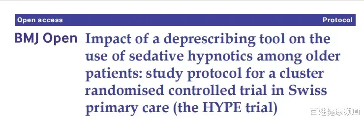 [6] Weiss K, Pichierri G, Grischott T,et al. Impact of a deprescribing tool on the use of sedative hypnotics among older patients: study protocol for a cluster randomised controlled trial in Swiss primary care (the HYPE trial)[J]. BMJ Open. 2023 Sep 19;13(9):e075828. Doi: 10.1136/bmjopen-2023-075828.