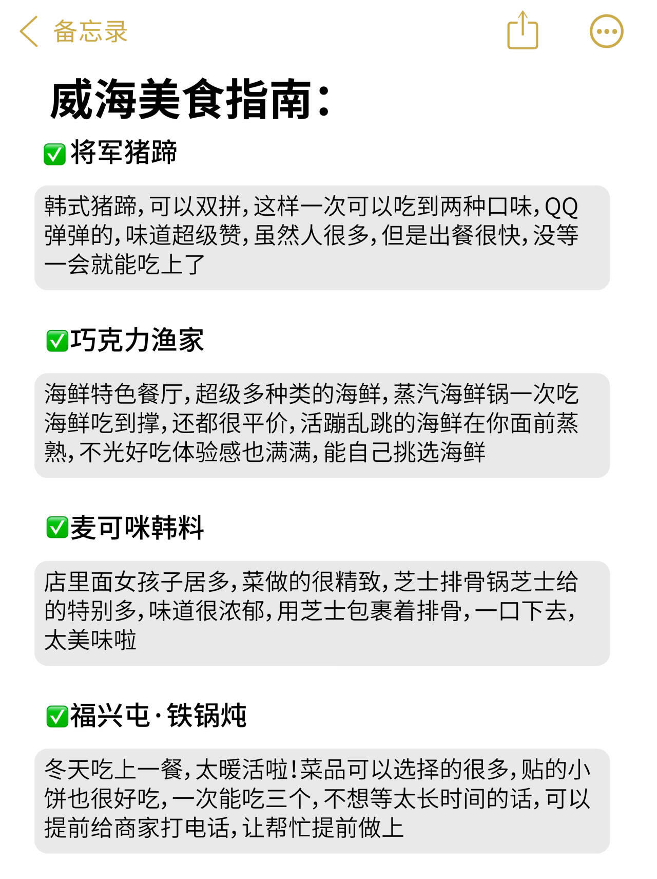威海的美食特别多,根本吃不完,这次在威海吃到了好多美食,给大家介绍几家、海鲜可以去吃🍫巧克力渔家,看着人很多我们就去了,味道👅很鲜美,🦪生蚝有的比手还大,服务员还一直帮忙开海鲜!!!!超级棒👍🏻还有一家是韩餐店,麦可咪韩料,菜做的很精致,芝士排骨锅里面的🧀芝士特别多!味道太浓郁了