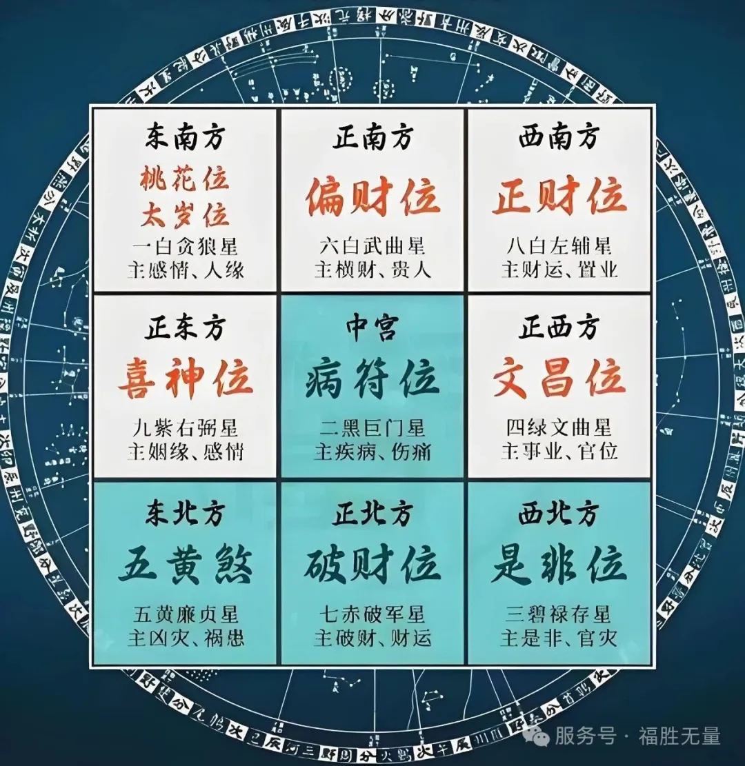 每年飞星位置变化,2025年正南方是“八白左辅星”,适合放招财物。