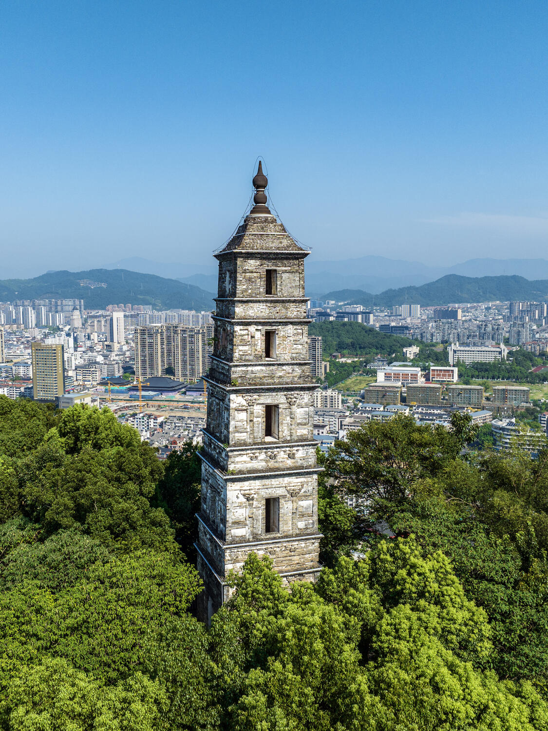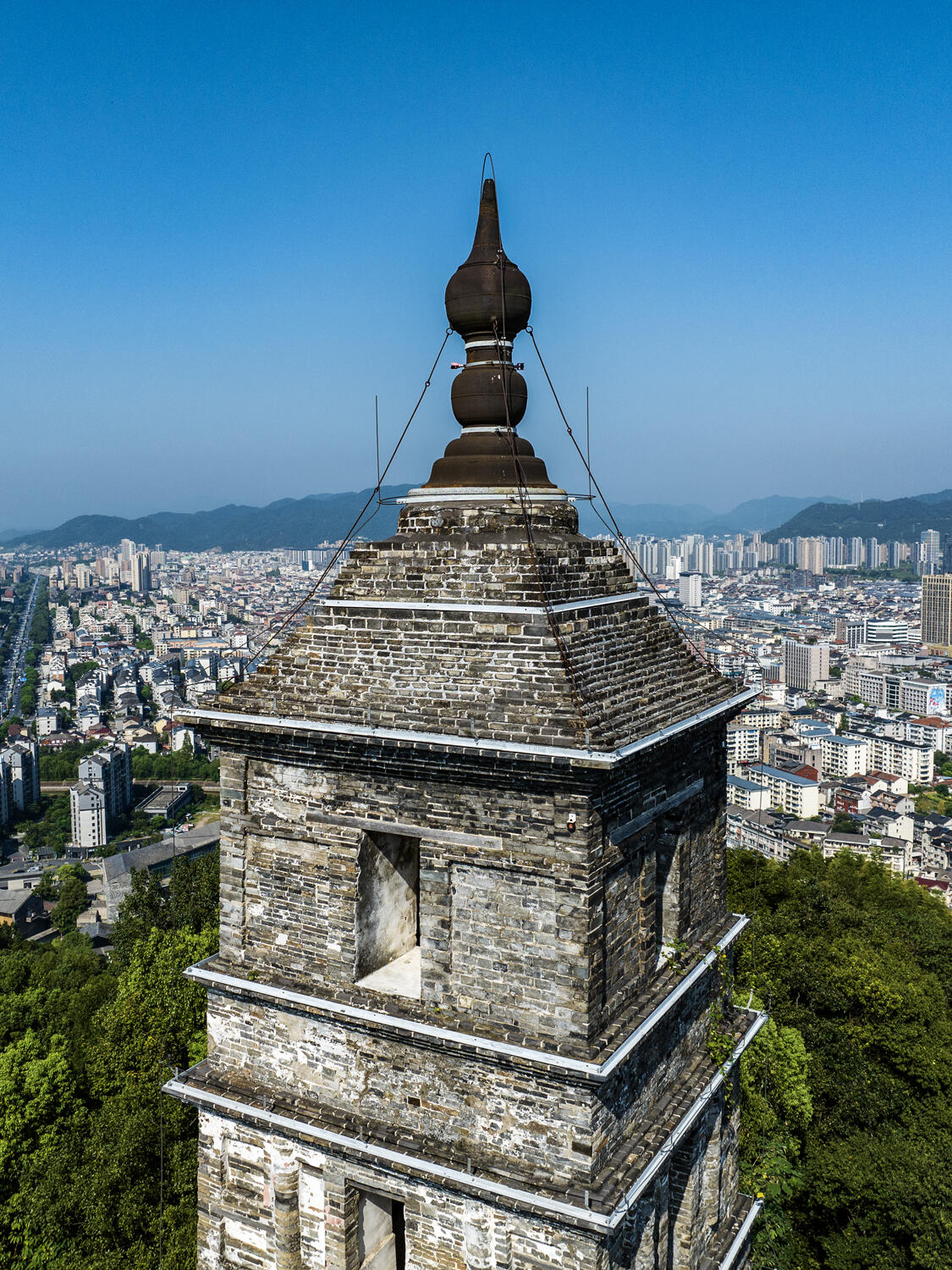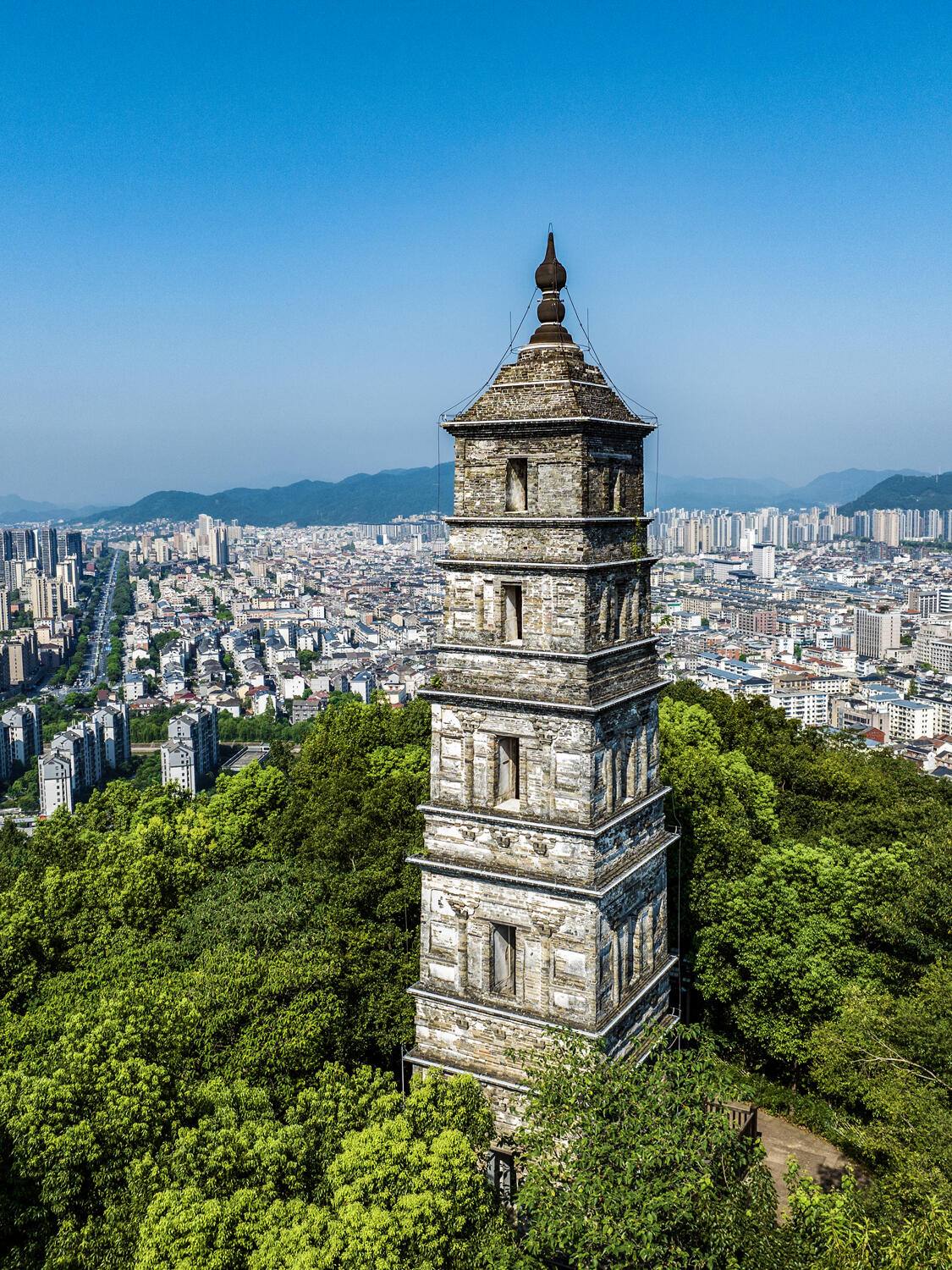 当你踏上功臣山,远远望去,功臣塔便映入眼帘。它那挺拔的身姿,在青山绿树的映衬下,显得格外庄严肃穆。走近细看,你会被它独特的建筑风格所震撼。功臣塔为方型五级,总高25.3米,采用砖木楼阁式结构,是浙江现存最早的方塔,也是江南地区最早的砖木混合结构仿楼阁式塔。这种独特的建筑风格,融合了木塔的精巧与砖塔的坚固,在建筑史上具有极高的价值。
