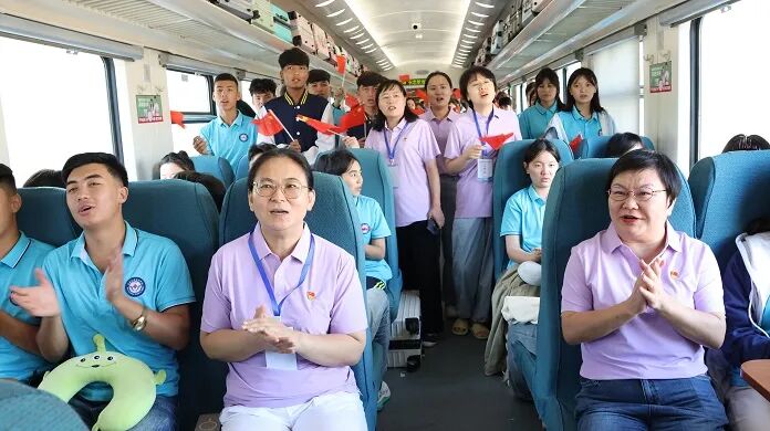 3000多公里路程虽然辛苦,列车上活动热闹非凡。辅导员召开“一堂班会课”,为同学们讲解学院发展、学生管理,做好入学教育。收看央视《开学第一课》,适应进入开学节奏。合唱《我和我的祖国》、《没有共产党就没有新中国》、《强军战歌》,声浪一阵高过一阵。青春欢快的民族舞蹈,使整节车厢成为火车“最燃车厢”。
