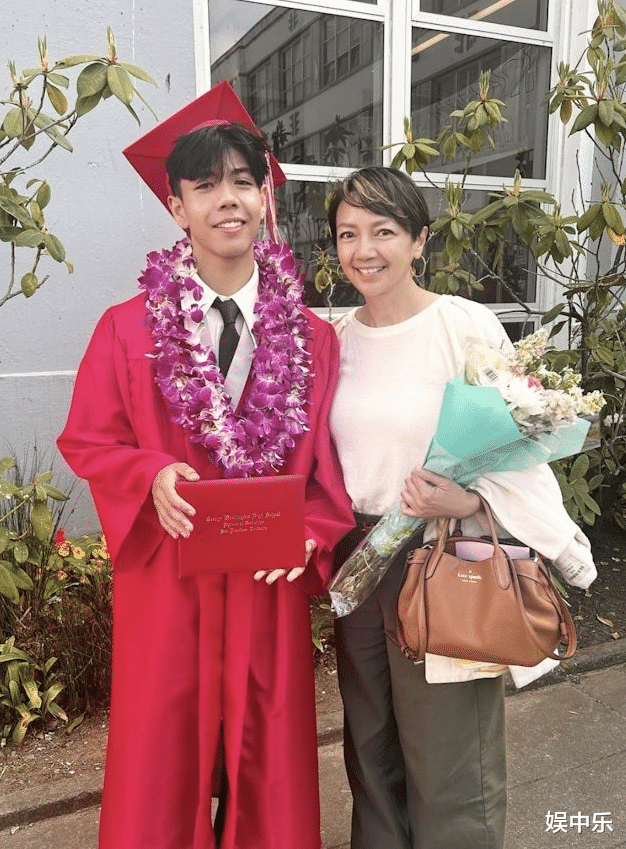 照片中的杨婉仪身着简约服饰站在郊野环境中,面部皮肤状态保持良好,虽然能看出自然衰老痕迹但仍显优雅气质。其子Jonah站立于母亲身旁,身高已明显超过母亲半个头,他将之前染成的金发恢复为深色系发型,整体形象较之前更为沉稳。