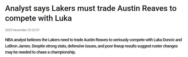 他写道:“仅靠东契奇、詹姆斯和里夫斯这套组合,湖人队很难在季后赛走得更远,他们必须尽快采取行动。这三位球员其实都值得更好的境遇:东契奇需要更出色的防守球员与运动能力强的队友;詹姆斯不该每场比赛都要打35.4分钟;里夫斯则理应获得成为球队核心的机会。”