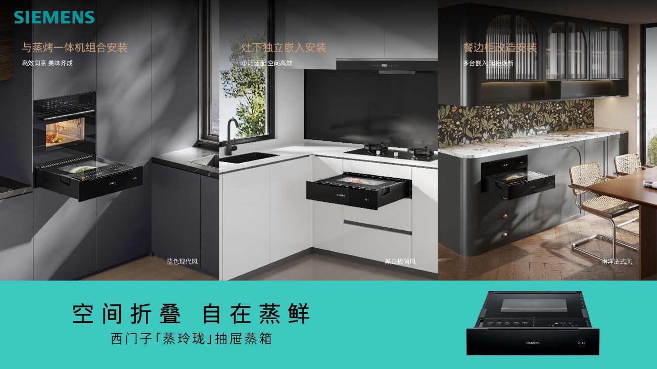 作为拥有百年蒸烤积淀的品牌,西门子家电始终致力于以创新重构人与厨房的关系。西门子「蒸玲珑」抽屉蒸箱以“快、准、澎”的核心技术保障蒸鲜品质,更凭借协同设计,让健康烹饪自然融入生活节奏。它不仅为蒸箱品类开拓了新的想象,更诠释了未来厨房的理念:真正的进化,不在于占据更多空间,而在于让每一寸空间都释放更高价值。